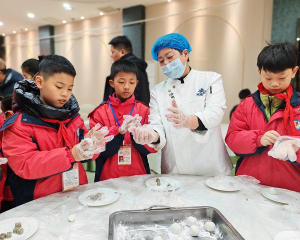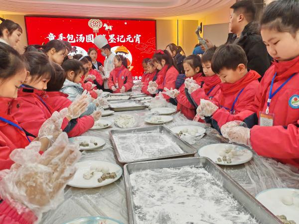 “先取一小块糯米粉团,搓圆后用大拇指摁出小窝,放入馅料后慢慢捏紧封口,最初搓成圆圆的小球就好啦!”勾当伊始,酒店厨师现场示范,一边包汤圆的环节步调,一边提示孩子们“馅料别放太多,否则容易露馅”。小记者们眼睛紧紧跟着厨师的动做,生怕错过任何一个细节。